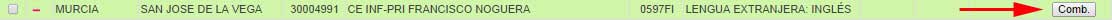 1.- Tenemos que localizar la plaza a tiempo parcial y darle al botón COMB, que sale a la derecha.
